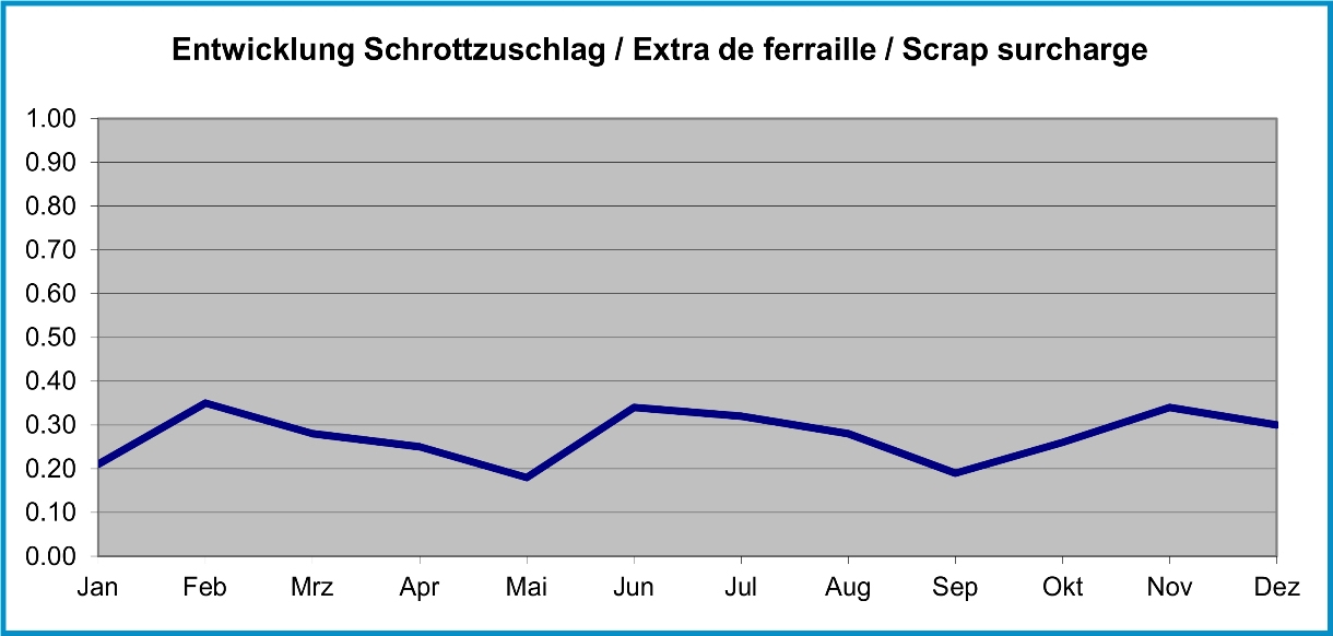 Die aktuellen Schrott- und Legierungszuschläge für die Hauptqualitäten unseres Sortimentes haben wir für Sie in untenstehendem PDF-File aufgelistet:
